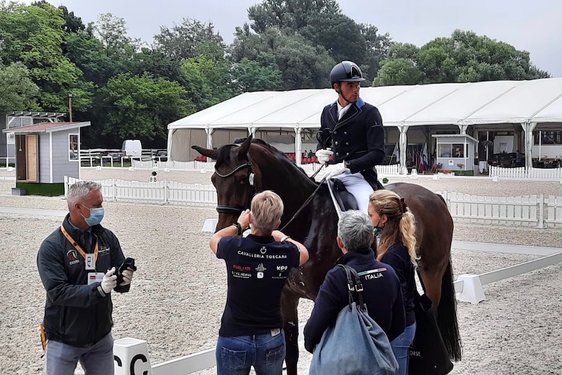 Dopo l’ingresso in rettangolo di ieri di Alice Campanella trentunesima su Gracile D.E.S. (66,647%) e di Beatrice Arturi quarantunesima su Grandeur (65,00%) oggi in campo anche il quarto componente del Team Italia: Melanie Bartz che in sella a Diary Dream Old ha chiuso quarantasettesima con il 62,059%.