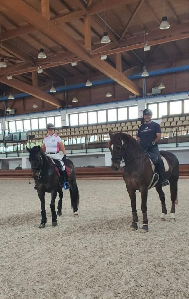 Il rettangolo per Vincenzo è stato molto appagante, ma com’è stata la sua carriera nel salto ostacoli? “Nel salto ostacoli ho ricevuto diverse soddisfazioni, le quali mi hanno anche portato, dopo un anno di patente A3, ad ottenere il primo grado. Ho conquistato diversi podi individuali e a squadre in Liguria, ho vinto il Campionato regionale primo grado in Toscana e nel 1998 sono stato autorizzato a partecipare ai concorsi ippici con la mia divisa della Polizia di Stato. Ho partecipato con buoni risultati anche a concorsi internazionali e a vari Campionati interforze. Ho svolto questa disciplina tra Liguria, Toscana e Lombardia; ma dal 2005 ci siamo trasferiti da La Spezia a Brindisi dove ho continuato con la disciplina del salto ostacoli con il cavallo con cui saltavo le 130. Dopodiché ho iniziato a collaborare con mia moglie Eleanor Frances Stiling nella preparazione dei cavalli da dressage”.