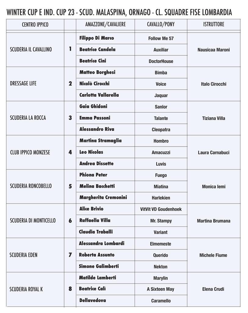 Un testa a testa fino alla fine delle due scuderie Lombarde, che vantano entrambe binomi di rilievo.
