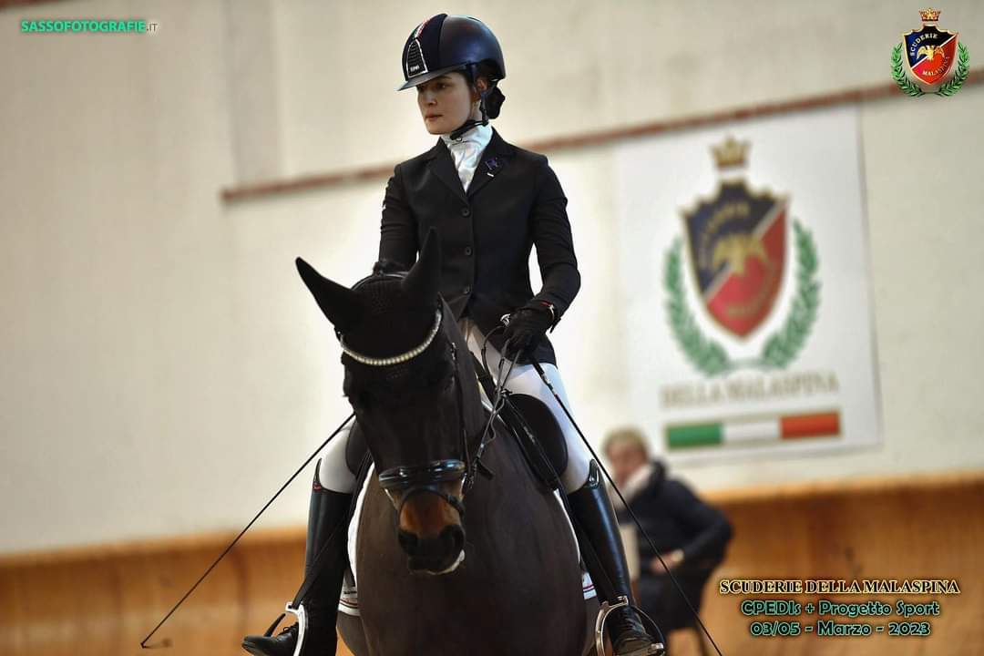 Alle sue spalle la compagna di squadra Carola Semperboni che nel primo internazionale dell’anno ottiene le percentuali di 72,431% e 71,875% nei Grand Prix e supera il 72% nel Freestyle.