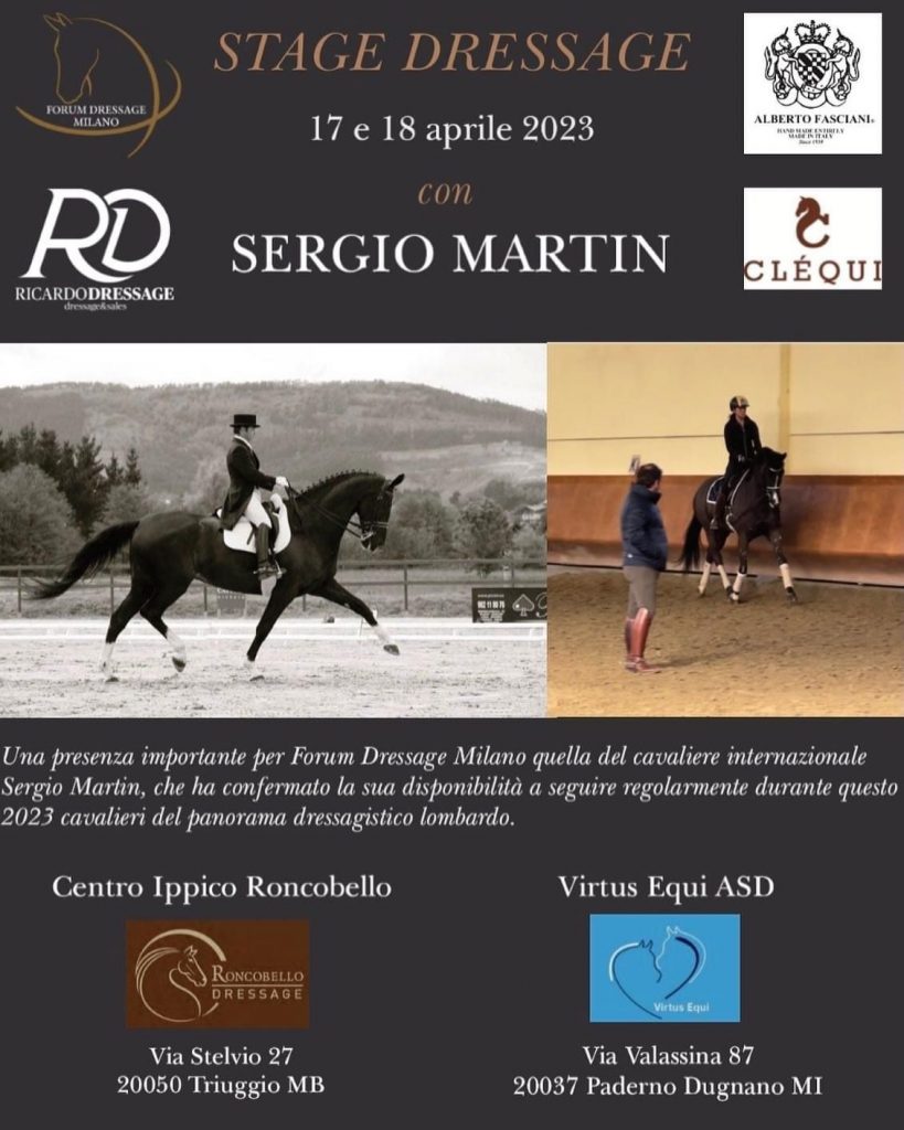 Continuano gli stage di Forum Dressage Milano sul territorio e nei vari centri ippici lombardi. A inizio stagione sono state riconfermate importanti collaborazioni, come quella con il cavaliere Sergio Martin, impegnato al Centro Ippico Roncobello e all’Associazione sportiva Virtus Equi, e quella con il Maestro Juan Diego Trevijano, che si divide tra il Centro Ippico Roncobello e Equus Academy, basata alla Cascina Sbianca.