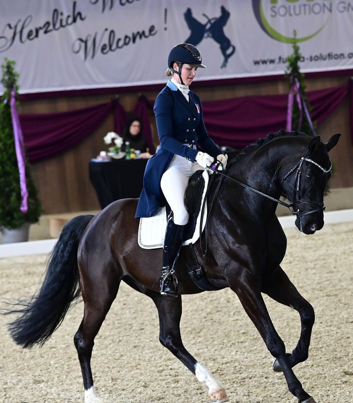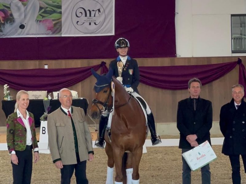 Xenia, che monta per l’Italia ma che attualmente risiede in Austria ed è seguita dal cavaliere austriaco Florian Bacher, al debutto internazionale del suo satiro danzante chiude il Prix St George al sesto posto con 63.059% per poi migliorare in seconda giornata in Inter 1 chiudendo al quarto posto con 64.6%.
