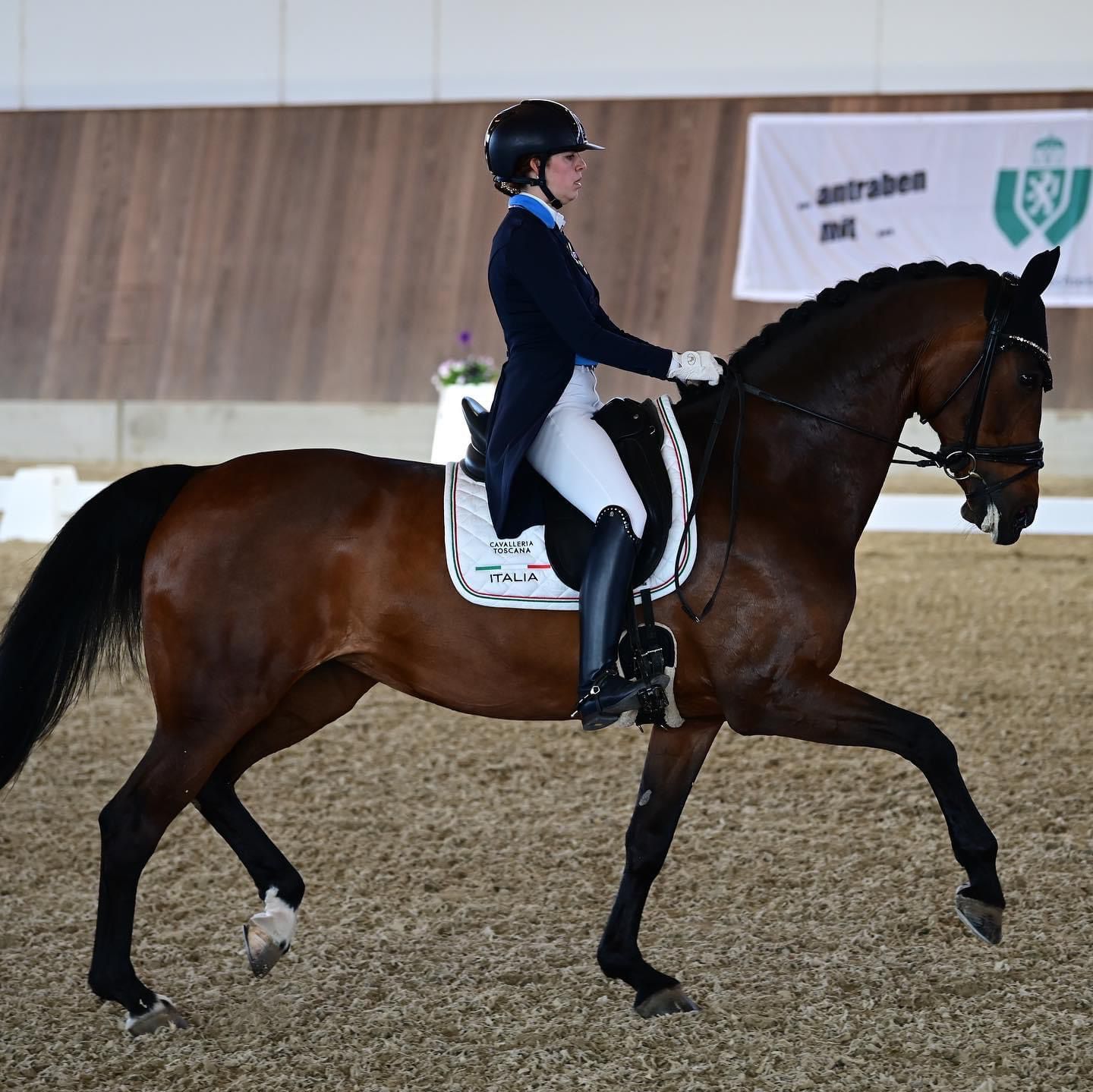Insieme a Martina nella categoria Young Rider abbiamo visto al via anche Rachele Bancora che con la sua Exupery 7 ha chiuso il Team test al 17 esimo posto con la percentuale del 64.5 per poi migliorare in Seconda giornata nell’individual chiudendo al 16 esimo posto e una percentuale del 65.4%.