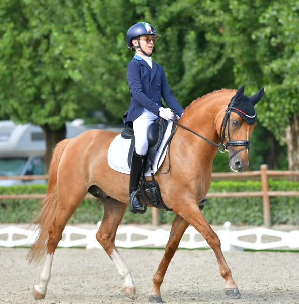 Il titolo tecnico 2025 della categoria Pony va a Luca Farina in sella al promettente Dacapo B, binomio in forza alla Scuderia Virtus Equi ASD. Con un punteggio totale di 137.193%, Farina si è imposto grazie a due riprese solide e ben impostate, frutto di un lavoro quotidiano impostato su qualità, precisione e spirito di squadra. La cosa sorprendente è che il binomio è nato da poco più di sei mesi, ma già dimostra una sintonia degna dei migliori.