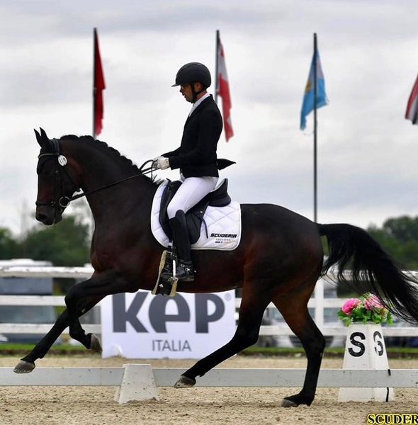 Secondo posto per Leonardo Farina con Alabama Chocolate, femmina baia scura figlia dello stallone Beldonwelt dell’Allevamento del Castegno.