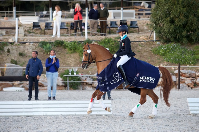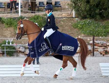 Nella categoria Pony la nostra  Lisa Bartz vince il Team Test con Derano B ed il 72.667 % ed è seconda con Hemingway B ottenendo il 69.000 % davanti all’ unico avversario il portoghese Francisco Braz con Der Kleine Choco Boy  63.571%. L’ azzurra bissa nell ‘ Individual Test ottenendo con Derano B il 70.631% ed il 69.144% con  Hemingway B, sul terzo gradino del podio ancora il Portogallo con Francisco Braz – Der Kleine Choco Boy – 62.162 %