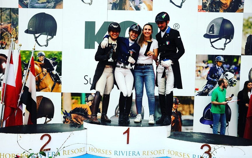 Negli Young Riders il Prix St Georges valido come Team Test porta alla vittoria l’ amazzone spagnola Alba Abollo Fontanela con Elvillar (67,79%), terza sul podio la nostra Ginevra Coperchio con Edipo El Bajo (66,13%) e quarta Aurora Roncaroni con World Champion (63,63%). L’ Individual Test di sabato propone la stessa classifica con la spagnola ancora vincitrice (69,76%), terza la Coperchio (66,03%) e quarta la Roncaroni (64,9%). Stesso finale anche nel Freestyle dove la russa vince con il 71,39%, Ginevra Coperchio terza con il 68,54% e Aurora Roncaroni quarta con il 61,48%