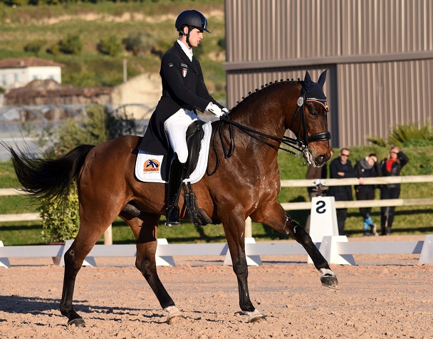 Qualche guaio per Leonardo Tiozzo, con Randon che si inceppa proprio dove il punto vale doppio. Oggi piaffe, passage e transizioni hanno dato più di qualche grattacapo al giovane cavaliere ed istruttore di Equestria, impedendogli di scalare la classifica e costringendolo al settimo posto con 62.902%. E dire che l’ingresso aveva creato subito ottime aspettative, che purtroppo si è stati costretti a rivedere al ribasso con Randon poco energico e per nulla concentrato.