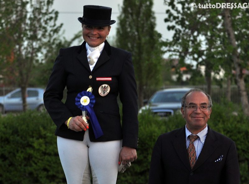 C’è solo una bandiera a sventolare sul podio ed è quella di due amazzoni ed un cavaliere austriaci che, con eleganza e savoir-faire, hanno monopolizzato la fase finale della gara e il suo risultato. Ulrike Prunthaller e Bartlgut’s Quebec superano il 70% e, con il risultato finale di 70.420%,  staccano si quasi un punto percentile il binomio formato dalla connazionale Karoline Valenta in sella a Valenta’s Diego. Christian Schumach e Diversus quasi strappano dalle mani dell’elvetica Marcela Krinke Susmelj, in gara con Smeyers Sopran, il terzo posto.