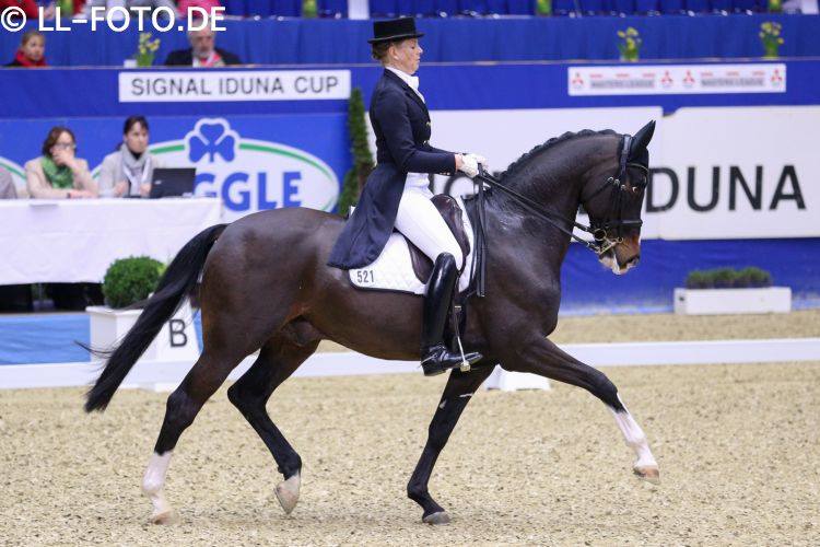 Buona ripresa per l’unico binomio azzurro presente al CDI5* di Dortmund. Pia Laus in sella a Shadow 660 è autrice di una riprasa dall’inizio sfavillante e caratterizzata da ottimi piaffe e buone andature. Purtoppo non altrettanto buone le transizioni tra andature e piaffe-passage, dove le imperfezioni causano la perdita di qualche punto, costringendo il binomio in ottava posizione con un comunque più che buon 69.440% tra molti dei migliori binomi europei in gara.