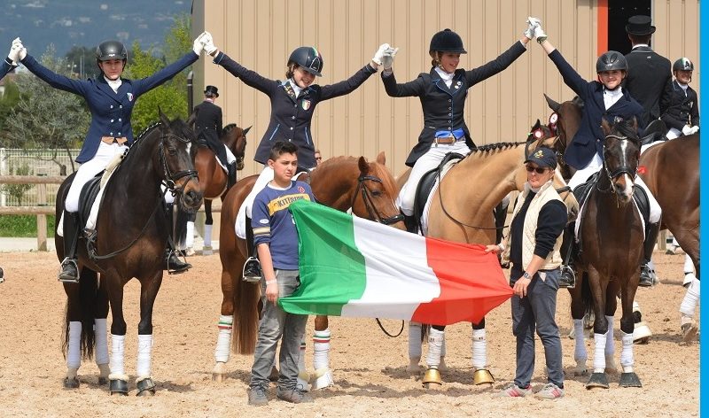 Nina Teresa Zennaro ha vinto sabato 4 aprile, il Team test pony con la percentuale di 69,872 e in sella a Duesmann, la giovane amazzone azzurra ha preceduto Caterina Neri, seconda, su Blakt’s Thomas (67,009%); Cecilia Magni, terza, in sella a Fs Cascada (66,667%); Mael Bombaci, quarta, su Okidoki (66,068%) e Ludovica Perbellini su Casper F e ancora Bombaci, ma in sella a Popcorn We, quinte a pari merito, entrambe con la percentuale del 64,359. Qualifica continentale ottenuta per i binomi che hanno superato la soglia del 66,00%.