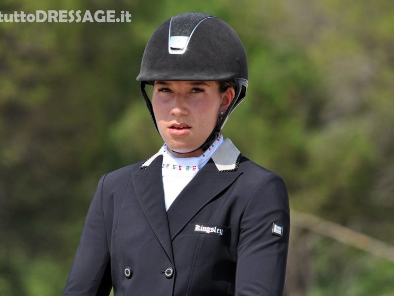 Un po’ delusa Chiara Prijs Vitale che non riesce a trovare la sintonia con lo stallone nero di 8 anni Sandbrink e conclude il test in undicesima posizione.