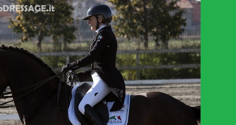 Sola a competere nella ripresa Intermediaire A, Caterina Giorgia Lidia Motta chiude in sella a Valentijn con 64.491%.