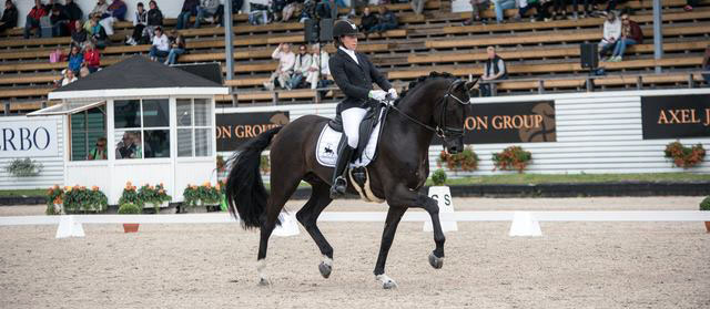 Falcon è un belga a sanguecaldo di cinque anni (da Apache x Donnerhall), Chiara aveva dunque l’ opzione di gareggiare per il Belgio o per l’ Italia ma naturalmente ha scelto l’ Italia.