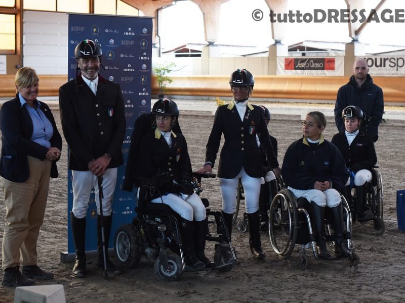 Un’altra grande giornata di successi azzurri quella di oggi, sabato 12 marzo, in occasione dello CPEDI 3 stelle in corso di svolgimento negli impianti dello Sporting Club Paradiso Horse & Pony di Caselle di Sommacampagna (VR).La squadra italiana agli ordini del tecnico federale Laura Conz e composta da Sara Morganti e Royal Delight, Silvia Veratti e Zadok, Ferdinando Acerbi e Quasimodo di San Patrignano e Francesca Salvadè e Muggel 4 ha vinto la gara per team inserita nell’internazionale veneto. Per l’Italia un punteggio complessivo di 439,923. La nostra squadra ha preceduto quella austriaca che ha concluso con 398,766. Un test importante, quello di Caselle di Sommacampagna, in vista della partecipazione, ormai assicurata per la nostra nazione, alle prossime Paralimpiadi di Rio de Janeiro.