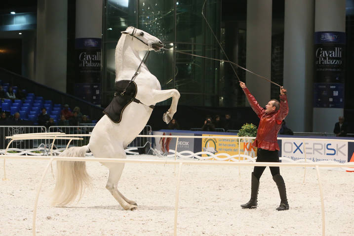 Da Cheval Passion di Avignone, a Equità di Lione, al Salone del Cavallo di Parigi, a Verona Fieracavalli, tanti sono stati i palcoscenici dove la coppia è andata in scena. “Siamo molto contenti di essere qui, è veramente una location eccezionale”, ha detto Patrick Jullien, appena arrivato a Milano. Allievi del grande maestro francese Lucien Gruss, l’artista ha spiegato come lo spettacolo equestre differisca dal dressage “sportivo”: quest’ultimo è, infatti, più rigido sotto l’aspetto della forma, del costume e della stessa tecnica. Seppure le basi classiche siano le stesse, lo show è caratterizzato da un profilo barocco, assente sui rettangoli di gara.