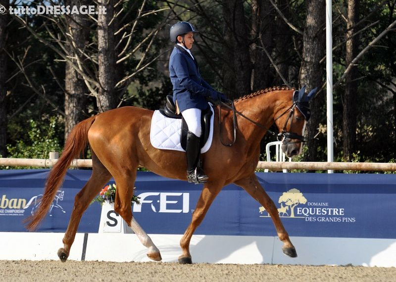 Austria in testa con il 72.333% per l’austriaca Lilli Ochsenhofer su Sanibel. Mezzo punto più indietro, con 71.833%, la svedese Cecilia Bergåkra Berglund in sella a I Do Kiss. Chiude il podio provvisorio l’elvetica Jorina Miehling in sella a Rising Star. La loro esibizione vale per i giudici 69.633%.