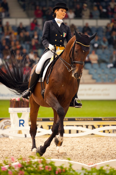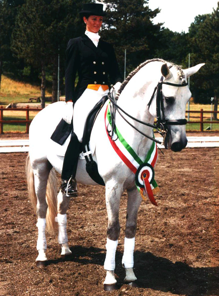ER: “Si, un percorso agonistico un po’ atipico se vogliamo. Sono entrata nei circuiti di gare nel 2000, molto tardi in effetti, avevo 23 anni. E prima di quell’esordio avevo fatto, ne parlavamo poco fa, solo spettacoli d’alta scuola. Nonostante l’avvio tardivo, in due anni sono riuscita a vincere la prima medaglia d’oro nel campionato Tecnico Senior Esperti con il lusitano Lofe e dopo quella molte altre, tanto da riuscire ad essere nel 2006 ai campionati del mondo di Aachen. Un percorso piuttosto accelerato.”