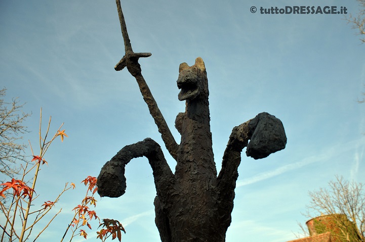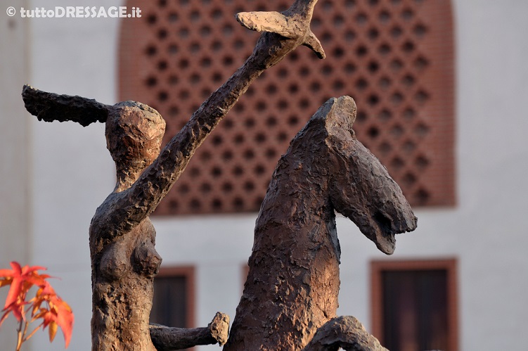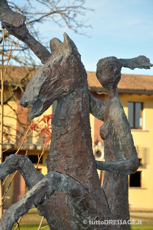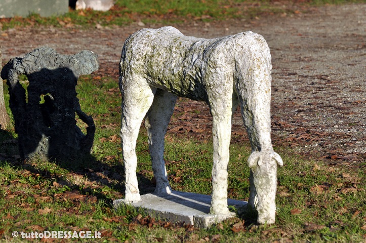 Visitando la tenuta mi hai mostrato anche le opere d’arte create da tuo padre che oltre che nella casa, adornano i giardini intorno al maneggio. Sei qui immersa tra arte equestre e le sculture.
