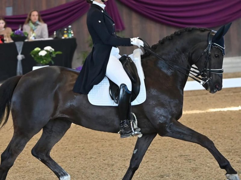 Maria Vittoria Duranti è stata la prima a scendere in campo. Nonostante l’emozione del debutto nella categoria U25, ha affrontato la gara con grande freddezza e concentrazione, commettendo un solo errore nel primo cambio nella diagonale del galoppo medio. Ha chiuso in 34ª posizione con il 66.500%, un risultato incoraggiante per il binomio.