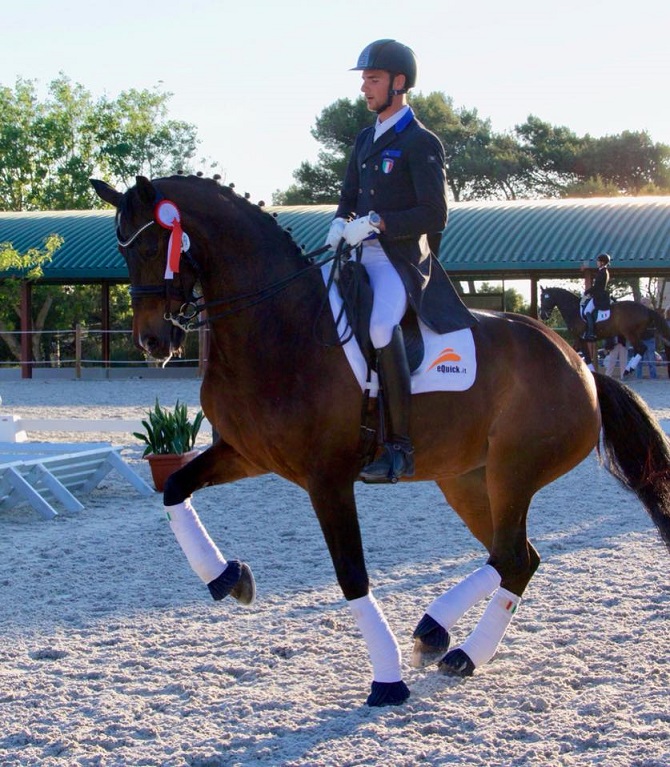Grandissima prestazione del giovane cavaliere azzurro in Portogallo vince il Freestyle Young Riders in una giornata di grandi risultati per tutti gli azzurri in gara. Nausicaa Maroni sfiora il 72 per cento e manca la vittoria di un soffio. Vincono anche Lisa e Melanie Bartz.