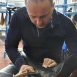 Dopo aver preso le misure si procede con il taglio, poi si cuce , viene montato e si arriva fin all’ultima fase che è l’ingambalatura, dove viene messo in forma, ed è un metodo di lavorazione storico, perchè non c’è macchina che possa sostituire questa fase.