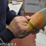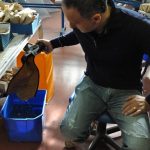 Lo stivale viene immerso nell’acqua in modo che si possa lavorare, viene messa la forma in legno e viene lavorato su di essa. In questo modo una volta messo in forno si plasma sulla forma, poi si lascia su di essa 2 o 3 giorni , il tempo di asciugatura.