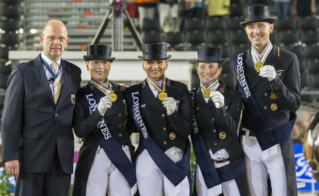 La squadra tedesca capitanata da Isabell Werth e Weihegold (83.743%) con Sönke Rothenberger e Cosmo (78.343%), Helen Langehanenberg e Damsey Frh (74.986%), Dorothee Schneider su Sammy Davis Jr (74.586%) con un totale di 237.072%% a mani basse conquista l’ ennesimo titolo continentale. La squadra tedesca avrebbe vinto perfino senza la performance di “regina” Isabell tanto per capire il divario tra la squadra germanica ed il resto d’ Europa.