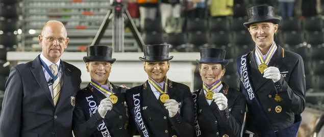 La squadra tedesca capitanata da Isabell Werth e Weihegold (83.743%) con Sönke Rothenberger e Cosmo (78.343%), Helen Langehanenberg e Damsey Frh (74.986%), Dorothee Schneider su Sammy Davis Jr (74.586%) con un totale di 237.072%% a mani basse conquista l’ ennesimo titolo continentale. La squadra tedesca avrebbe vinto perfino senza la performance di “regina” Isabell tanto per capire il divario tra la squadra germanica ed il resto d’ Europa.