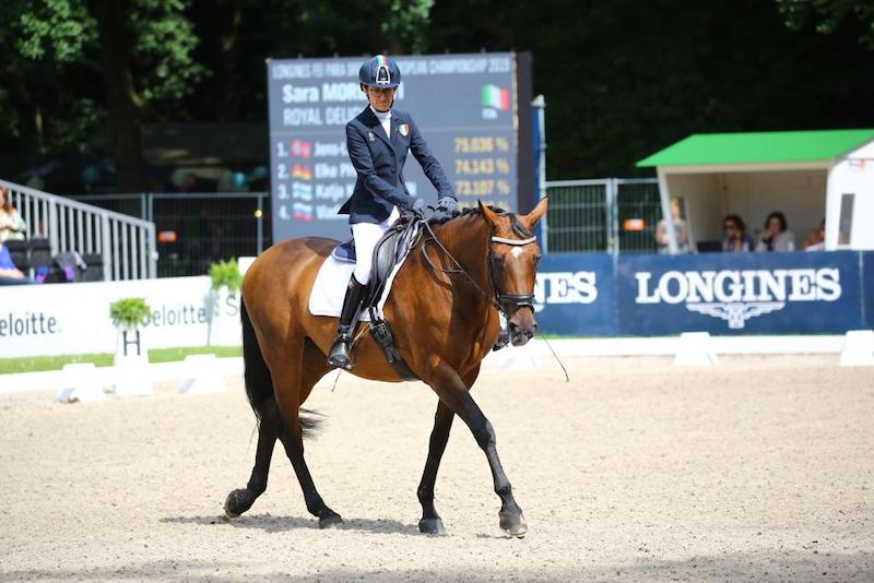 Con la sensazionale percentuale del 79,273 la Campionessa del Mondo in carica ha messo in cassaforte il suo secondo metallo nell’edizione 2019 del Campionato Europeo di paradressage, che si è concluso oggi a Rotterdam in Olanda. Il successo è arrivato questa volta nella prova con musica, il Freestyle del grado I, gara in cui l’amazzone azzurra è sempre riuscita a stupire i suoi tantissimi sostenitori. Anche in questa occasione l’oro nella “prova artistica” è andato alla Norvegia di Jean Lasse Dokkan su Aladin (80,193%). Bronzo per Rihards Snikus su King of the Dance (Lat), che ha chiuso con il 77,387%.
