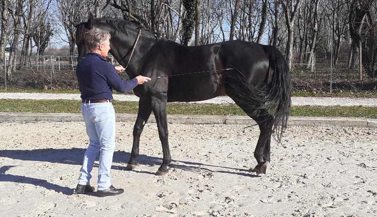 Jack, aiutato dall’applicazione del Condizionamento Operante, nel suo primo anno imparerà la versione semplificata degli aiuti: una redine per girare, due per fermarsi, una gamba per spostare la groppa, due gambe per accelerare. Imparerà a mantenere l’ equilibrio in un circolo di 20 metri alle 3 andature, ad eseguire le transizioni semplici (da una andatura a un’altra), verso la fine del primo anno riuscirà a procedere diritto senza la guida della parete, ad allungare e raccorciare le falcate senza perdere l’equilibrio, ad accettare serenamente il contatto.