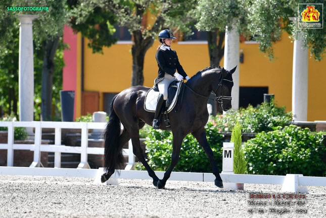 - Quali sono stati i tuoi maggiori successi a livello agonistico fino ad oggi? Con Cascada e grazie a lei, e al prezioso lavoro con Claudia, ho raggiunto tantissime soddisfazioni. Sono stata selezionata per l’Academy di dressage della Lombardia e ho avuto l’opportunità di partecipare alle Ponyadi: prima nel completo (dove siamo arrivate seconde individualmente e prime come squadra per la Lombardia) e poi nel dressage, salendo di nuovo sul podio con la squadra. Da lì sono arrivate tante altre vittorie, sia individuali che di squadra, nella Coppa delle Regioni – ne abbiamo fatte due o tre, se ricordo bene. Ho conquistato anche il podio ai Campionati Italiani di Dressage due volte: il primo anno con un argento e, l’anno successivo, con l’oro nella categoria Esperti. Con Cascada ho avuto anche la splendida esperienza del Future Team Italia e ho partecipato al mio primo internazionale!