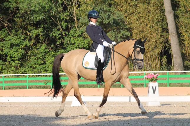 - Ci racconti un po’ di te: Da quanto tempo pratichi equitazione? Come ti sei avvicinata al mondo del dressage? Cosa ti ha spinta a scegliere il dressage come disciplina principale? Ciao, mi chiamo Aurora Fossi, ho 19 anni e ho sempre amato l’equitazione. Fin da piccola mettevo in fila i miei cavallini in miniatura (ne avevo tantissimi), facendoli scendere dalle scale, dalla mia cameretta fino alla sala! Credo che questa passione travolgente per l’equitazione me l’abbia trasmessa il mio bisnonno, e gliene sono davvero grata. Pratico equitazione da 16 anni: come tanti bambini, ho iniziato a 4-5 anni, facendo pony games, gimkane, gimkane jump e, soprattutto, tanti caroselli! A 11 anni ho avuto il mio primo pony, Peelgrin, con cui ho iniziato il salto ostacoli e partecipato alla mia prima gara di dressage. Poi è arrivata la pony che mi ha rubato il cuore e a cui devo probabilmente tutto, inclusa la scelta di trasformare la mia passione in un vero lavoro: FS Cascada, la pony di Cecilia Magni. Avevo 12 anni, e con lei ho sentito una sintonia che non avevo mai provato con nessun altro pony. Sono stata fortunata a poter lavorare con lei e imparare da lei per cinque anni! Insieme abbiamo fatto di tutto: completo, salto ostacoli, e dressage. FS Cascada mi ha restituito quella fiducia che avevo perso, e mi ha portato a incontrare Claudia Ambiveri, la mia istruttrice. Claudia ha avuto la pazienza di lavorare con noi e portarci a tanti successi. Con lei sono diventata una dressagista pura (o almeno ci provo!); mi ha fatto innamorare di questa disciplina.