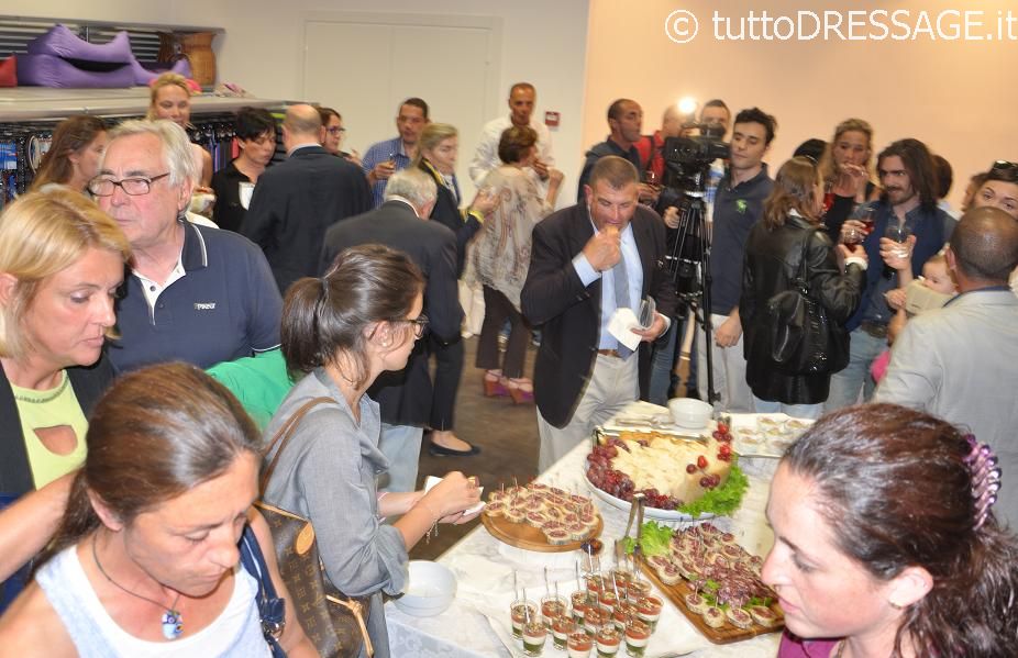 Lunedì sera si è tenuto un simpatico aperitivo al quale hanno partecipato tra gli altri anche volti molto conosciuti del dressage con le amazzoni internazionali Silvia Rizzo e Nausicaa Maroni, il tecnico Michele Betti ed ancora lo stilista Gino Moschetti creatore di Accademia Italiana Style, il Master di piaffe e passage Roberto di Marco de Il Cavallino e tanti ma proprio tanti addetti ai lavori.