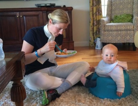 Laura Tomlinson in attesa della premiazione a Wellington si prende cura della piccola Annalisa. (photo courtesy Laura Tomlinson).