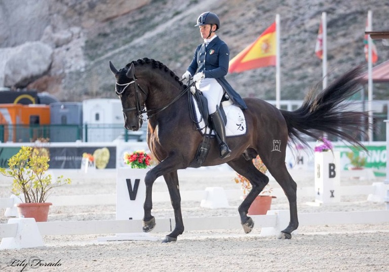 Era già accaduto nel 2016 a None ed a distanza di tre anni Nausicaa Maroni torna sul gradino più alto del podio mostrando con orgoglio l’ oro ottenuto nel più prestigioso rettangolo dei cavalli iberici con Embajador.