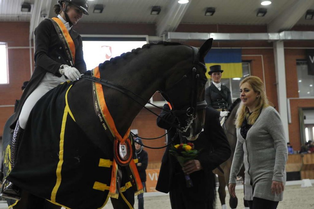 Inna Logutenkova nella kur vincente a Zhashkov in sella a Stallone dove hanno vinta la tappa finale della Central European League World Cup (photo and video copyrights Malgorzata Frysztak ).