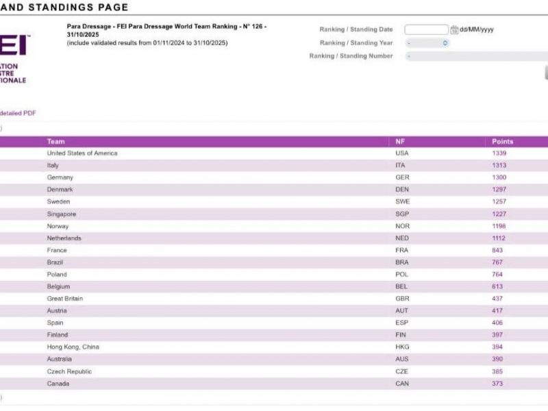 L’Italia del Para Dressage continua a brillare sulla scena internazionale. I nuovi aggiornamenti dei ranking FEI certificano un risultato storico: la nazionale azzurra è al secondo posto nel FEI Para Dressage World Team Ranking, piazzandosi prima tra le nazioni europee e dietro solo agli Stati Uniti.