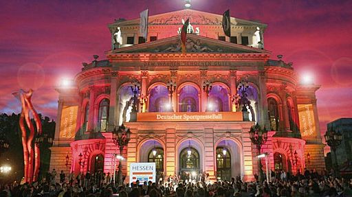 Il vecchio palazzo dell' Opera di Francoforte la sera dello Sportpresseball.