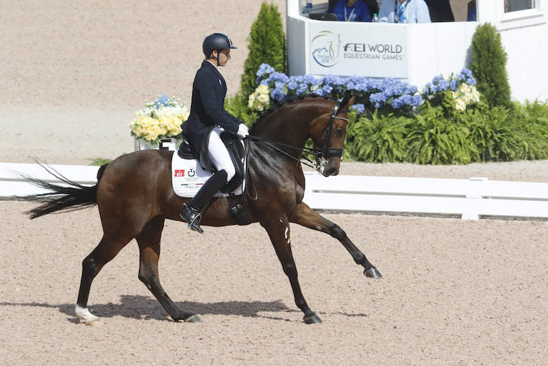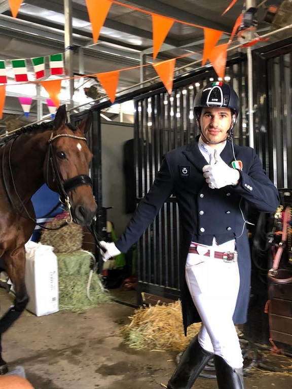 “Il caldo ha caratterizzato questi giorni pre gara e gara, da parte mia ho davvero cercato di dare il meglio, peccato per qualche imperfezione nei cambi a due e nel primo piaffe ma la cavalla è stata super ed ha sempre risposto agli ordini in maniera stupenda. Da parte mia ero un filo preoccupato per l’ ampiezza dell’ arena perchè ad Aachen aveva fatto una difesa sulla linea centrale ma è stata bravissima non potrei chiedere più.”