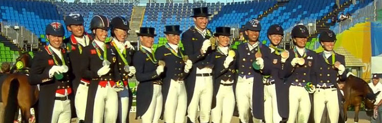 Al Deodoro Park risuona l’ inno tedesco, sul gradino più altro del podio tre amazzoni e un giovanissimo cavaliere, Isabell Werth, Dorothee Schneider, Kristina Broring-Sprehe e Sonke Rothenberger il loro sorriso brilla più dell’ oro scintillante che mostrano al collo.