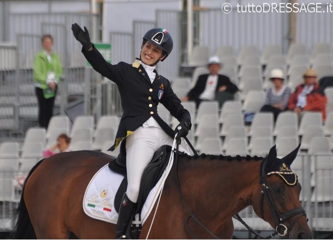 “Prima di entrare in campo ho sentito un pochino la gara ma appena salita a cavallo mi sono svuotata completamente la mente e concentrata su ogni singolo passo della nostra ripresa. Il lavoro è tanto, il sacrificio e l’ impegno affrontato sempre con gioia… ho un grande team che mi sostiene!