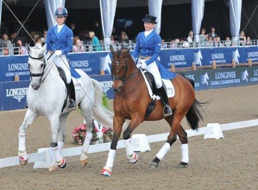 Le medaglie d’ oro olimpiche Laura Tomlinson e Charlotte Dujardin si esibiscono in un Pas de deux al Longines Global Champions Tour di Londra (photo courtesy: British Dressage / video courtesy: horseandcountry.tv).