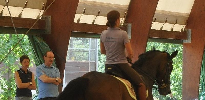 “Abbiamo curato tutti i particolari: la settimana scorsa abbiamo fatto un check up completo con il veterinario ed Eremo è in grande forma poi avevamo previsto questo stage di Monica, perchè un occhio esterno non guasta mai, infatti abbiamo aggiustato due o tre cose… piccole cose, oggi si è visto dal passage al passo abbiamo fatto una fase intermedia, abbiamo lavorato meno su piaffe e passage perchè non è li che il cavallo ha bisogno di migliorare, più che altro abbiamo fatto molta decontrazione e lavorato sul fatto che il cavallo impari a disciplinare la sua irruenza, la sua forza, il suo impulso che è fantastico ma va tenuto insieme al cavaliere.