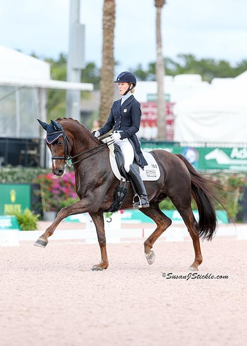 Arlene Page, in sella a Woodstock, infila la seconda vittoria conquistando il GP Freestyle con un ottimo 72.950%. Al secondo posto, con 66.500%, Nora Batchelder su Bahai.
